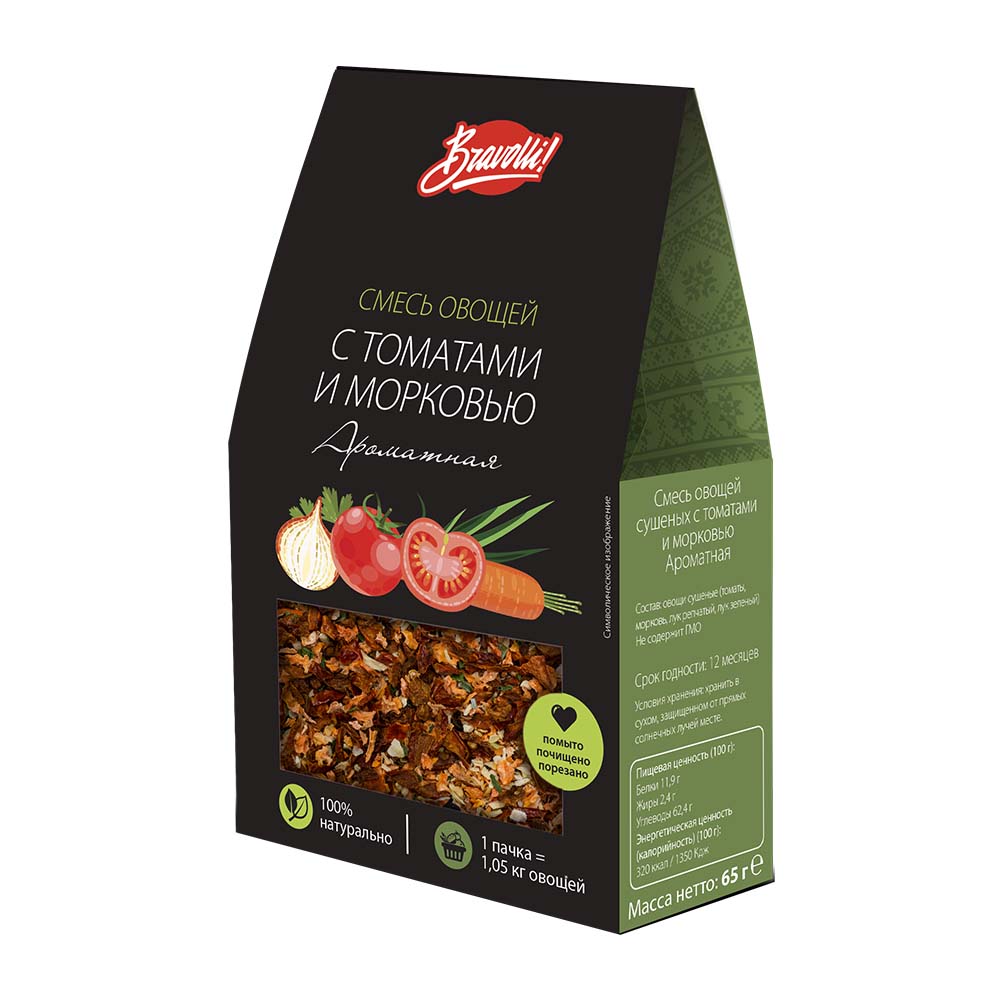 —Смесь овощей с томатами и морковью. Ароматная, Bravolli, 65 г.